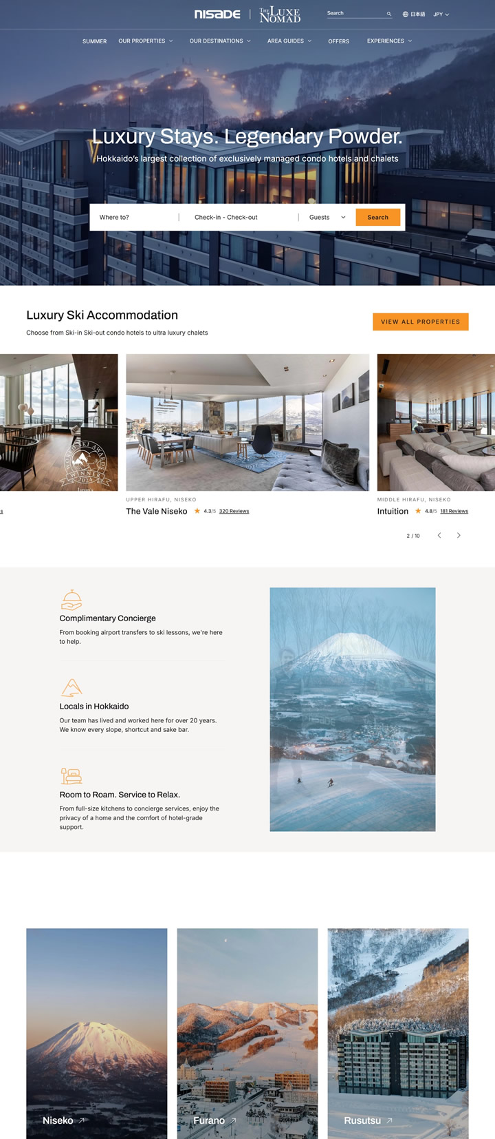 欢迎来到NISADE |Luxe Nomad,我们管理着日本最受欢迎的滑雪进出酒店、时尚的公寓酒店以及精心设计的小木屋。我们拥有20多处房产和900多个客房,自豪地称霸北海道最大的度假租赁管理公司。