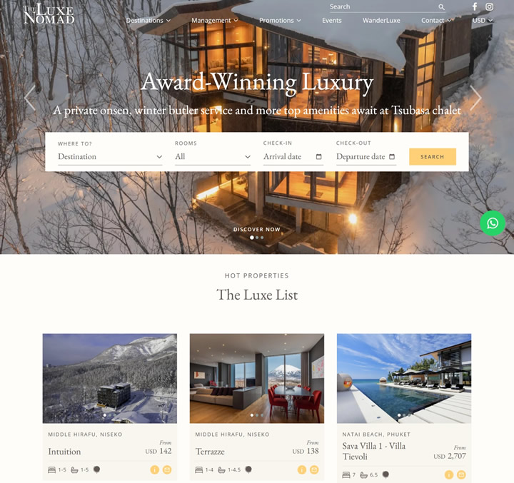 The Luxe Nomad是亚太地区最大的豪华度假租赁管理公司。在我们的投资组合下,我们拥有一系列私人别墅、小木屋和公寓酒店,涵盖1400多间客房。我们精心挑选的目的地包括巴厘岛、苏梅岛、普吉岛、新雪谷、留寿都和富良野。我们的使命是激发难忘的假期,通过难忘的住宿和真诚的款待帮助客人更好地旅行。消除假期中的猜测,我们邀请您“做一点梦想,经常旅行。
